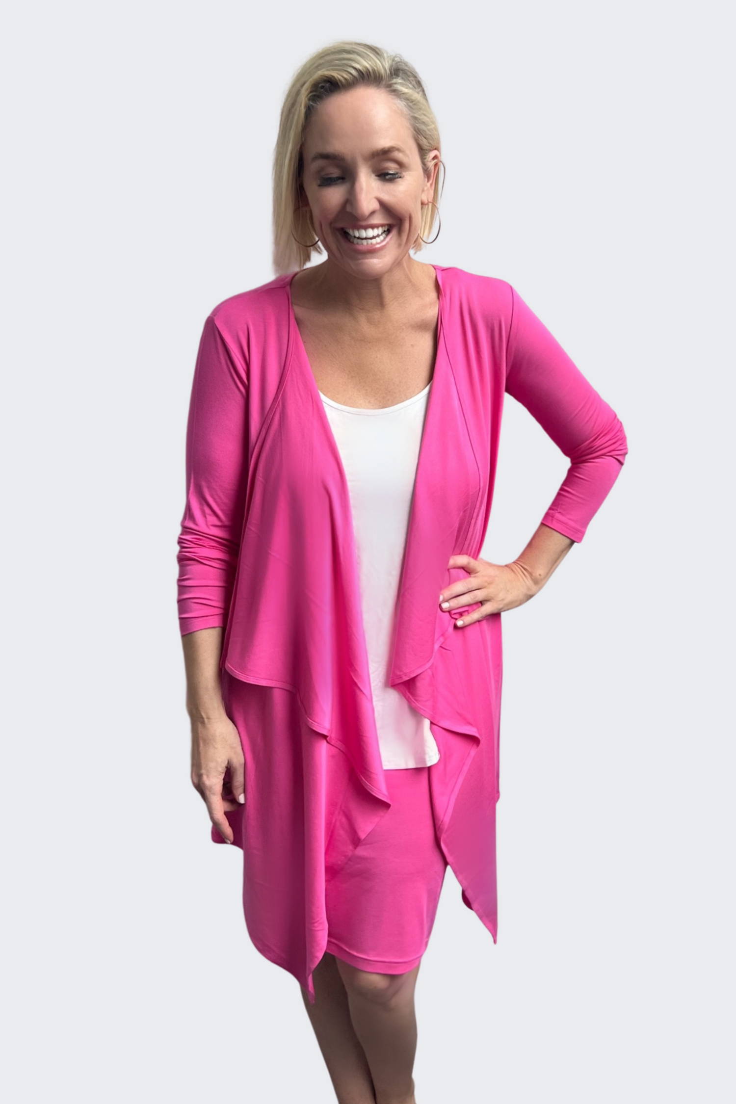 Designed to flatter your shape it has you covered from behind and the open front drapes beautifully. It’s light weight, made from our super soft bamboo blend fabric, and it’s so versatile you can dress it up or down. It’s a go-to piece for your wardrobe, you’ll need it in every colour.