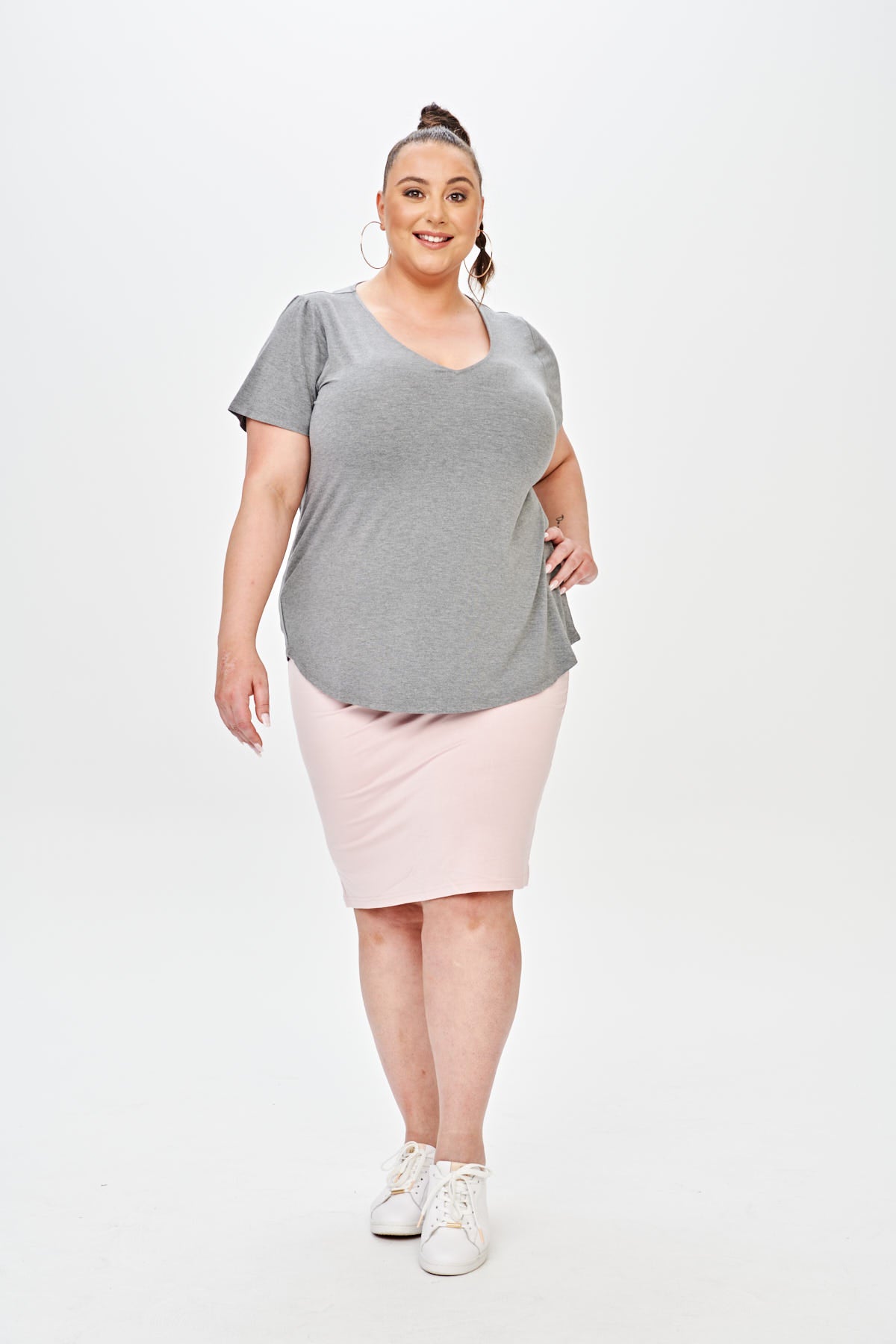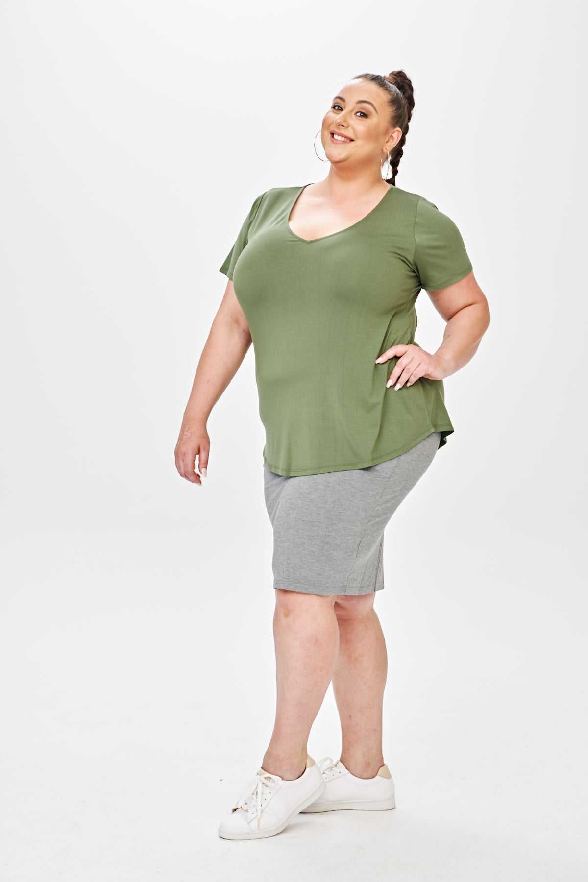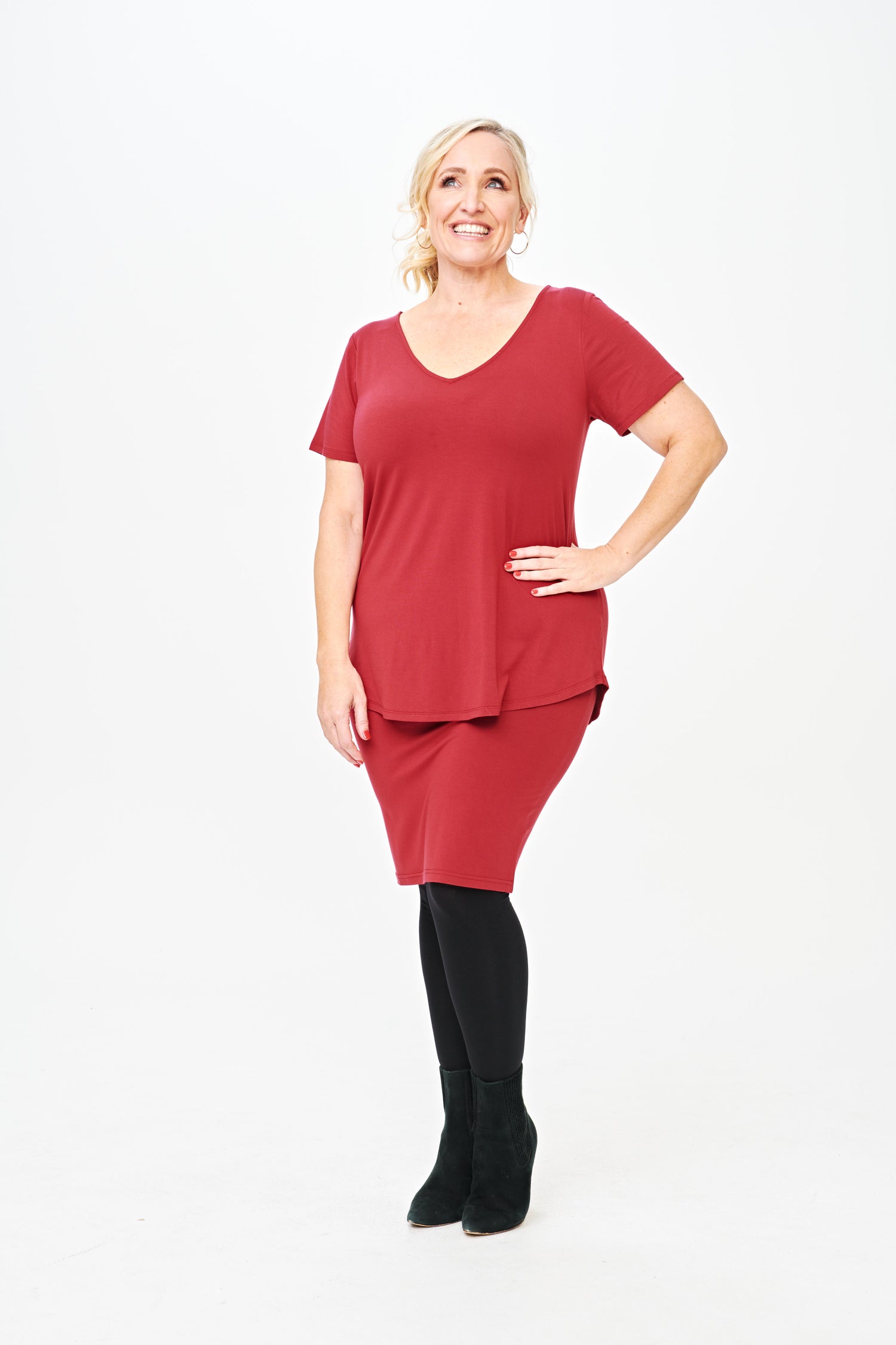 Made from our signature super soft bamboo blend fabric this relaxed tee doesn’t grab you, instead it gives your body the space it deserves. With a v-neck to compliment your shape and a scooped hem front and back, the Don’t Cling To Me tee is so flattering it will ruin all other t-shirts for you.